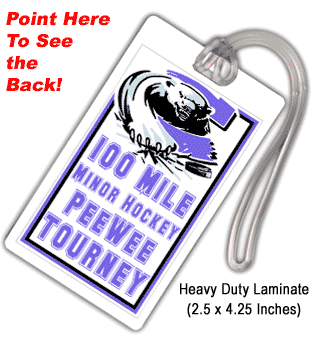 Custom designed sports bag tags can be an economical and functional memento of a player's participation in a tournament or league. They can also be a unique way to celebrate achievement, like "Player of the Game". Featuring heavy duty lamination and a durable vinyl luggage loop, these sports bag tags are manufactured using quality components. A player's name, team and phone number can be easily added to the backs of our non-personlaized bag tags with a permanent marker! |