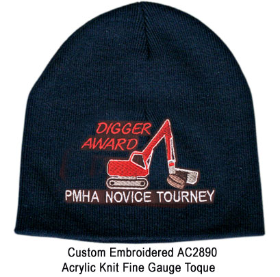 Let us create custom embroidered ball caps or toques for your tournament or association. Popular, practical mementos and, unlike t-shirts, there's no need to worry about sizing. AC2890 toques are available in 20 different colors. |