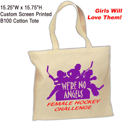 Do you need a change from t-shirts? Our Cotton Totes are a popular and economical choice for girls events. Made of durable 7.4 oz., 100% natural cotton with reinforced stitching on the handles. We'll create a unique design for your next event or work with your existing artwork. |