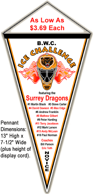 For Larger Quanitities, We Will Quote. Add 25 cents per pennant or banner to personalize with individual players' names or team rosters. Free Shipping for Orders Over $750.00! |