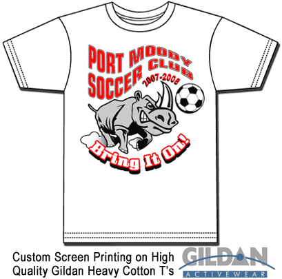 We specialize in printing great looking t-shirts with awesome multi-colored graphics! Our custom screen printing is done on high quality Gildan Heavy Cotton t-shirts. We'll create a unique design for your next event or work with your existing artwork. Ask us about printing on the back of the shirt or sleeves. |