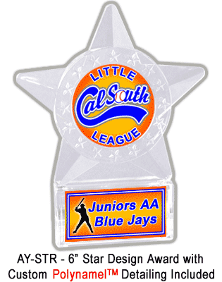 Any trophy shop can sell you awards that are labelled with boring generic decals and standard engraving, but at betterawards.com we bring low cost acrylic trophies to life with great looking custom designed graphics! Each of our trophies feature a pair of brilliant PolynamelTM plates, customized with your group's emblem and colors. Why settle for generic looking trophies, when you can have these popular and economical awards personalized for all of your events? |