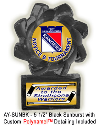Any trophy shop can sell you awards that are labelled with boring generic decals and standard engraving, but at betterawards.com we bring low cost acrylic trophies to life with great looking custom designed graphics! Each of our trophies feature a pair of brilliant PolynamelTM plates, customized with your group's emblem and colors. Why settle for generic looking trophies, when you can have these popular and economical awards personalized for all of your events? |