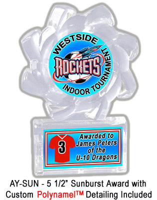 Any trophy shop can sell you awards that are labelled with boring generic decals and standard engraving, but at betterawards.com we bring low cost acrylic trophies to life with great looking custom designed graphics! Each of our trophies feature a pair of brilliant PolynamelTM plates, customized with your group's emblem and colors. Why settle for generic looking trophies, when you can have these popular and economical awards personalized for all of your events? |